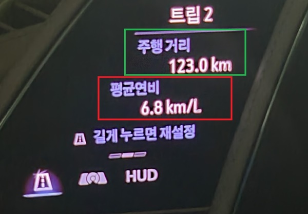 도심 도로 중심의 총 123.0km 시승한 후 체크 한 캐딜락 에스컬레이드 스포츠 플래티넘 트림의 실제 주행 연비는 6.8km/ℓ를 기록했다.