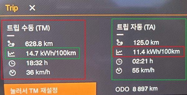 하지만 전비는 이전 시승의 503.8km 주행을 합산해 총시승 거리 628.8km에서 전비를 체크했다.