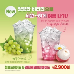 특히 청포도에는 비타민이 풍부하고, 리치는 저열량의 과일이라 이번 에이드 메뉴는 여름 시즌에 부담 없이 마실 수 있는 음료가 될 것으로 보인다.
