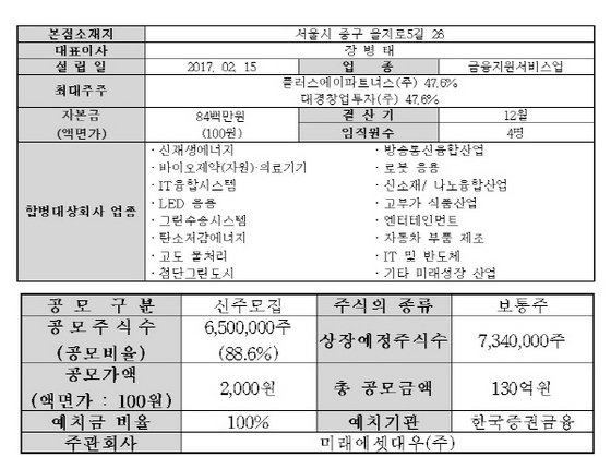 미래에셋대우기업인수목적1호및 한화수성기업인수목적는 다른 법인과의 합병을 유일한 사업목적으로 설립됐다.