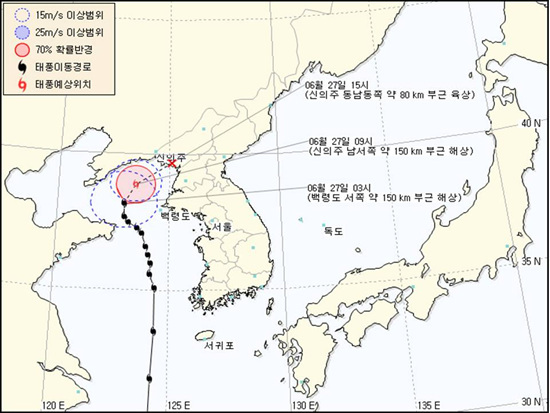 [서울=DIP통신] [강은태 기자] = 제5호 태풍 메아리가 6월 26일 16시 백령도 서쪽 120㎞ 앞바다를 통과해 빠져 나가면서 27일 전국의 피해상황이 드러나는 가운데 전라북도는 상대적으로 큰 피해가 없는 것으로 나타났다.