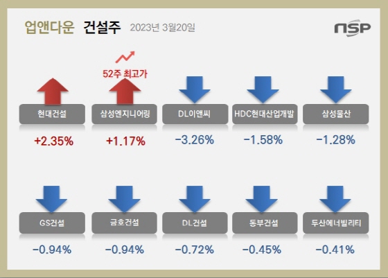그 외 DL건설(-0.72%),동부건설(-0.45%),두산에너빌리티(-0.41%)순으로 하락했다.