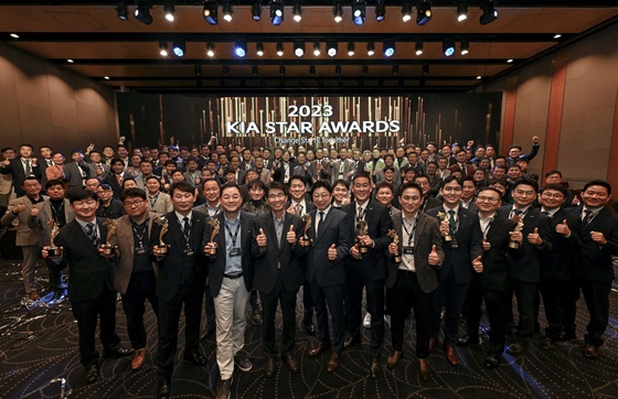 기아는 17일 제주 해비치 호텔에서 ‘2023 기아 스타 어워즈’ 행사를 개최하고 지난해 판매 우수자 151명을 시상했다.