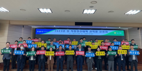 (전남=NSP통신) 김용재 기자 = 농협 전남본부(본부장 박종탁)는 21일 본부 2층 대강당에서 쌀 수급안정과 쌀값 안정을 위해 ‘쌀 적정 생산대책 권역별 설명회’를 개최했다.