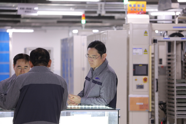 이재용 회장은 이날 2021년 가동을 시작한 삼성전기 텐진 MLCC 생산 라인을 살펴보고, 현장 근무자들을 격려했다.
