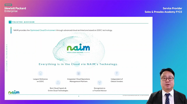 (서울=NSP통신) 이복현 기자 = 나임네트웍스(대표 이주완·서영석)의 클라우드 통합운영관리 플랫폼 ‘탱고(TANGO)’가 ‘HPE SP Sales & Presales Academy 2023’ 웨비나 세션에서 아시아 대표 솔루션으로 소개해 주목을 받았다.