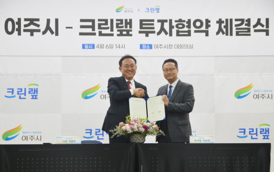 이충우 여주시장(왼쪽)과 이준혁 크린랲 부사장 (사진 = 크린랲 제공)