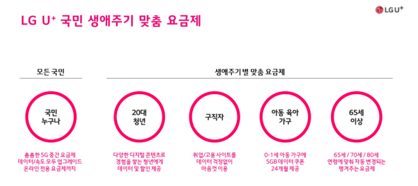 이재원 LG유플러스 MX혁신그룹장(전무)은 “이번 생애주기별 5G 요금제 개편을 통해 그동안 정체됐던 국내 이동통신 시장에 서비스·요금 경쟁을 촉발하는 신호탄을 쐈다는 의미가 있다”며 “앞으로도 고객가치를 향상시키는 방안을 가장 먼저 생각하고, 아무도 생각하지 못한 과감한 도전을 시도하는 시장 선도기업으로 자리매김하겠다”라고 말했다.