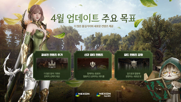 이와 함께 게임 내 공성 참가 길드의 용병으로 가입해 활약하면 승리 보상을 나눠 받는 용병단 시스템 등 신규 콘텐츠를 추가하고, 일부 장신구 중 파괴된 아이템을 복구할 수 있는 스페셜 쿠폰을 비롯한 각종 이벤트를 선보일 계획이다.