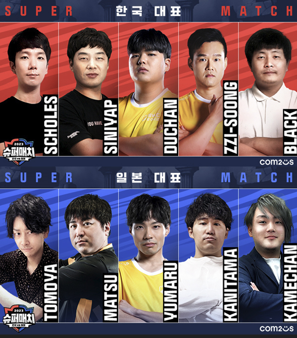 예선을 통해 발탁된 선수들은 한국과 일본 양국에서 SWC2022 성적을 기준으로 어드밴티지를 받아 첫 번째로 대표팀에 이름을 올린 ▲DUCHAN과 ▲YUMARU가 합류해 슈퍼매치에 참가하게 됐다.