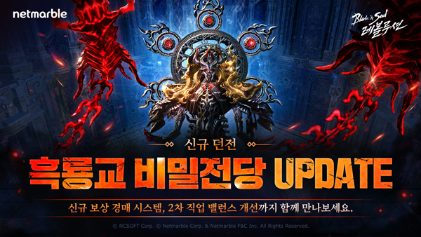 (서울=NSP통신) 이복현 기자 = 넷마블(대표 권영식, 도기욱)이 모바일 MMORPG 블레이드 & 소울 레볼루션(개발사 넷마블에프앤씨)에 신규 던전 ‘흑룡교 비밀전당’을 추가하는 등 업데이트를 진행했다.