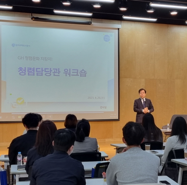 (서울=NSP통신) 정의윤 기자 = 경기주택도시공사(GH)가 사장 및 부서별 청렴담당관 38명이 참석한 가운데 ‘청렴담당관 워크숍’을 개최했다고 밝혔다.