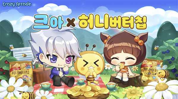 이번 제휴를 통해 크레이지 아케이드 인기 캐릭터 다오, 배찌, 우니, 케피와 허니버터칩 캐릭터 허비가 그려진 ‘크레이지 아케이드X허니버터칩’ 컬래버 제품을 출시한다.