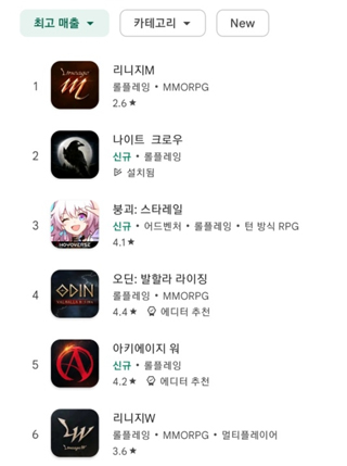 위메이드 나이트 크로우 구글 매출 2위 기록…총 33개 서버 운영