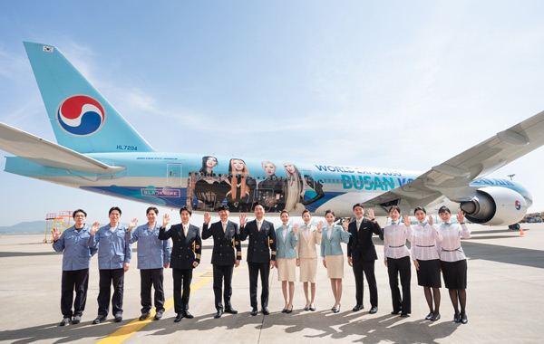 대한항공은 이번 부산세계박람회 유치 지원을 위해 보잉777-300ER 항공기를 동원하는 한편, 전 세계적 인지도를 갖춘 대한민국의 대표 아티스트인 블랙핑크를 항공기에 입혔다.