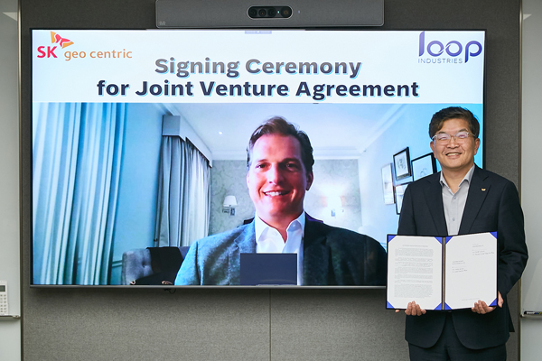 SK지오센트릭은 캐나다의 루프(Loop Industries)와 합작법인 설립 계약(JVA)을 체결했다고 밝혔다.