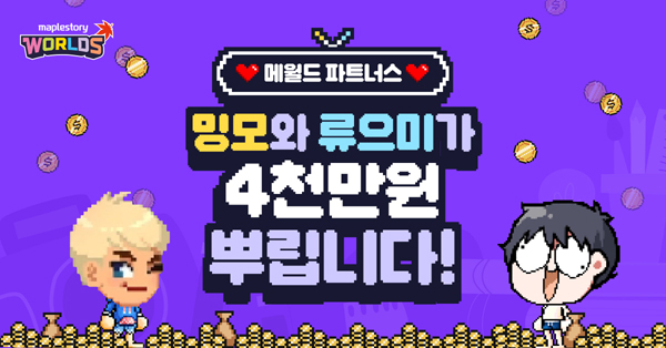 총 상금 4000만원 규모로 열리는 메월드 파트너스는 일반 이용자들이 메이플스토리 월드 플레이 영상을 직접 제작해 업로드하면, MC 역할을 맡는 밍모와 류으미가 영상을 각자 감상한 후 당첨자를 선정해 상금을 제공하는 방식으로 5월 한 달간 진행된다.
