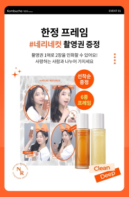 SNS 이벤트도 마련됐다. 콤부차 에센스 포토프레임으로 촬영 후 공식 계정 해시태그와 함께 SNS에 업로드 시, 추첨을 통해 롯데월드 자유이용권과 허니멜팅립 등 네이처리퍼블릭 인기 색조 제품을 증정한다. 해당 이벤트는 6월 4일까지만 진행되니, 서둘러 응모하는 것을 추천한다.