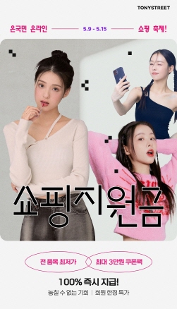 (서울=NSP통신) 박유니 기자 = 토니모리는 오는 15일까지 다양한 인기 제품을 높은 할인가와 파격적인 혜택으로 만나볼 수 있는 5월 ‘쇼핑 지원금’ 프로모션을 진행한다.