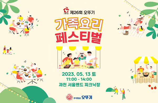 (서울=NSP통신) 이복현 기자 = 오뚜기(대표 황성만)가 오는 13일 과천 서울랜드 피크닉장에서 요리축제인 ‘스위트홈 제26회 오뚜기 가족요리 페스티벌’을 개최한다.