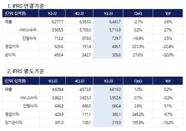 영업이익은 전년도 마포 솔루션 센터 매각 746억원 등 부동산 일회성 이익에 따른 역기저 효과와 물가상승에 따른 비용 부담으로 전년대비 22.4% 하락한 4861억원을 기록했다. 별도기준은 9.7% 하락한 3881억원으로 집계됐다.