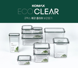 이번에 새롭게 선보이는 밀폐용기 ‘에코 클리어’는 SK케미칼의 에코젠 소재로 만든 투명(CLEAR)한 용기란 의미로 제품의 특징을 그대로 제품명에 담았다. 유리의 투명함과 깨지지 않은 플라스틱의 장점을 결합한 ‘에코 클리어’는 실리콘 패킹을 제외한 몸체, 뚜껑, 손잡이까지 모든 부분이 ‘에코젠’으로 만들어져 어느 각도에서 보아도 용기 내부의 내용물을 선명하게 볼 수 있다.