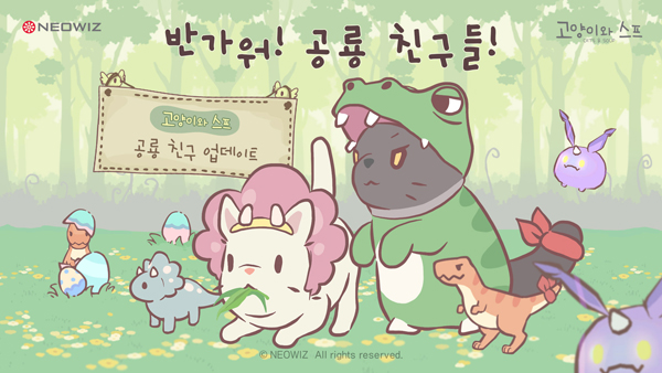 고양이들의 새로운 친구가 되어 줄 공룡 친구 티라노 사우루스, 공룡 친구 트리케라톱스와 티피 텐트(삼각뿔 형태의 인디언 텐트) 콘셉트의 새로운 시설 스킨 등 기간 한정 상품도 오는 24일까지 판매한다.