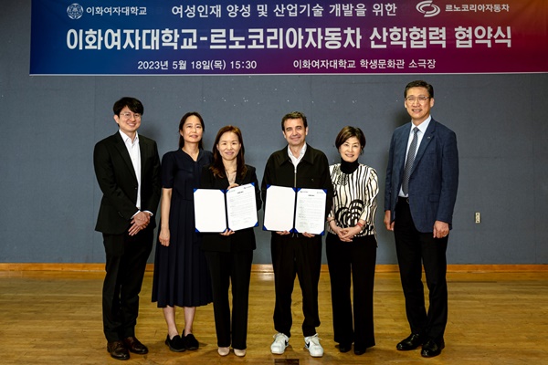 이날 협약식에서 르노코리아 박정완 인사본부장과 이화여자대학교 백지연 인재개발원장은 여성 인재 양성을 위한 프로그램 운영 등을 담은 산학협력 협약서에 서명했다.