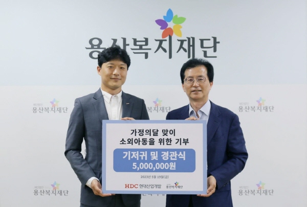 HDC현대산업개발은 용산구 관내에 사는 소외 장애아동의 생활 지원을 위한 기부금 500만원을 용산복지재단에 전달했다고 밝혔다.