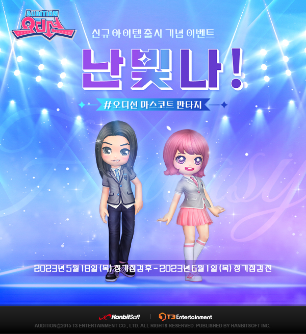 오디션은 신규 업데이트를 기념해 6월1일 정기점검 전까지 2주 간 마스코트의 댄스실력을 뽐내고 주목받을 수 있는 ‘판타지 난빛나!’ 이벤트를 진행한다.