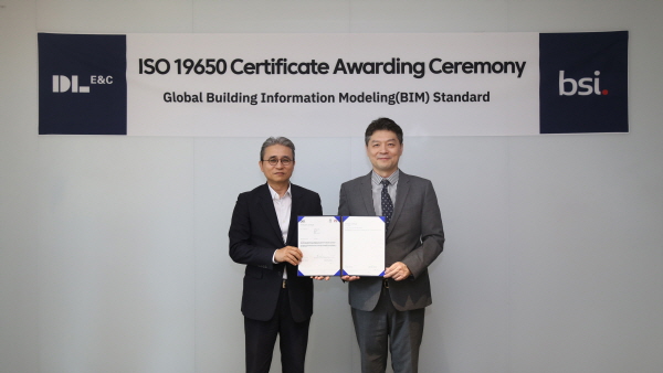 DL이앤씨에 따르면 원도급자로서 ISO 19650 인증을 받게됐으며 BIM 정보관리, 표준화된 기술과 품질, 전문기술조직 등에 대한 역량을 국제적으로 인정 받게 됐다고 설명했다.