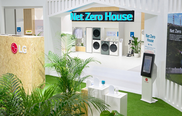 LG전자는 탄소중립을 의미하는 ‘넷제로(Net Zero) 하우스’를 테마로 전시공간을 꾸몄다. 에너지 효율을 높이는 기술과 재활용 소재를 적용한 가전, LG 씽큐(LG ThinQ) 기반의 에너지 모니터링 등을 통해 탄소 배출과 에너지 사용량을 저감해 지속가능한 삶을 선보인다는 의미를 담았다.