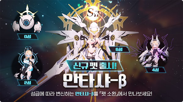 이번에 선보인 신규 S급펫 ‘안타샤-β’는 성능과 외형이 성급에 따라 변한다. 특히 목표대상의 물리 데미지 감소를 무시하는 패시브 스킬을 지니고 있다.