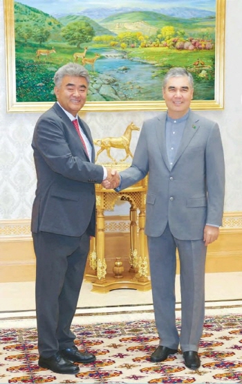 대우건설은 지난 29일 정 회장은 투르크메니스탄 수도인 아쉬하바트에 위치한 대통령궁에서 세르다르 베르디무하메도프(Serdar Berdimuhamedow) 대통령을 예방하고 아르카닥 궁의 최고지도자 집무실에서 구르반굴리 베르디무하메도프(Gurbanguly Berdimuhamedow) 국가최고지도자 겸 인민의사회의장을 예방했다고 31일 밝혔다.