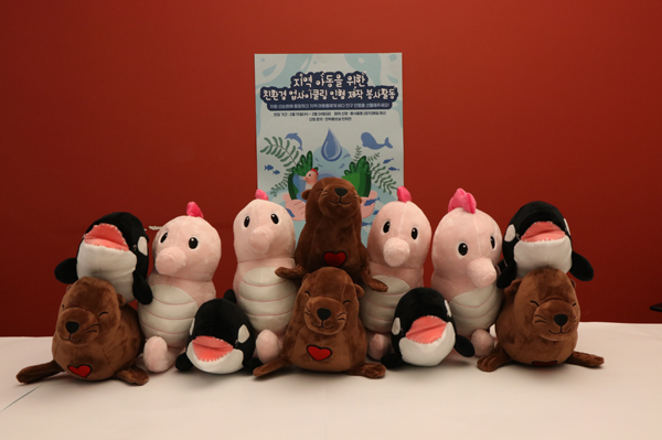 인형은 귀여운 해양 동물을 본뜬 형태로, 바다 생태계를 위협하는 폐플라스틱을 재활용한 솜과 실 등 업사이클 소재로 만들어졌다.