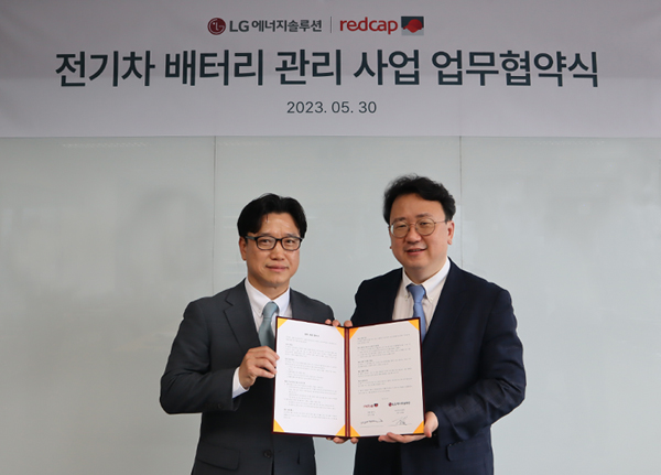 LG엔솔은 30일 서울 중구에 위치한 레드캡투어 본사에서 ‘전기차 배터리 관리 사업 강화를 위한 업무협약(MOU)’을 체결했다.