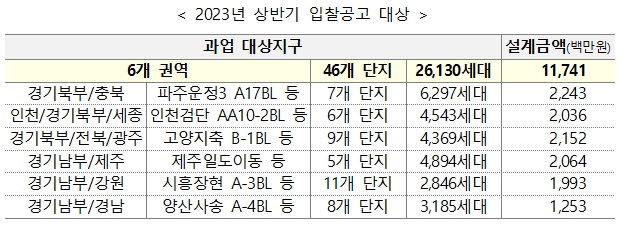 이번 용역 대상은 오는 2023년 8월부터 2024년 1월까지 준공되는 공동주택으로 6개 권역 46개 단지(2만6130가구)로 금액은 117억원이다.