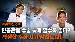 국가에서 보험으로 정하고 있는 기준은 65세 이후지만, 적절한 시기를 놓쳐 방치하게 되면 연골이 닳아 없어져 뼈끼리 마찰이 더욱 심해지면서 통증이 극심해지는 것은 물론, 염증 및 관절 변형까지 발생할 수 있는 만큼 개인마다 수술의 타이밍을 잡는 것이 관건. 영상에서는 환자의 상태별로 병원을 방문해서 전문가와 상의해야 하는 최적의 시기를 알려준다.