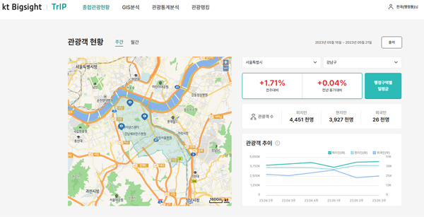 통신 빅데이터 기반 방문객 분석 및 카드 소비 분석 서비스 등 제공