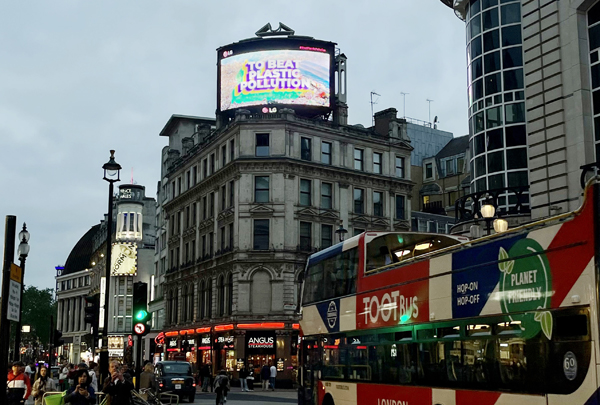LG전자는 5일 세계 환경의 날을 맞아 세계 곳곳에서 다양한 환경 보호 캠페인을 전개한다. 이달 말까지 뉴욕 타임스스퀘어와 런던 피카딜리광장 대형 전광판을 통해 유엔환경계획(UNEP)이 제작한 플라스틱 절감 캠페인 영상을 상영한다.