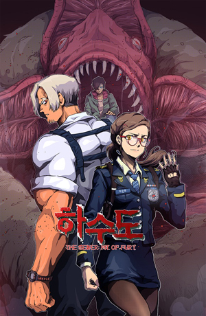 ‘하수도’는 환락의 도시에서 하수도를 타고 다니는 거대 괴물과 가족을 잃은 주인공 천도철이 대결을 벌이고, 이외 각 계층을 대표하는 주인공들을 내세워 증오와 치유의 이야기를 담은 현대 판타지 스릴러 장르 웹툰이다.