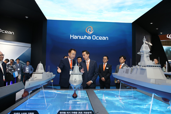 설명을 듣고난 뒤 “한화오션이 잠수함 분야에서 세계 최고의 기술력을 갖췄을 뿐 아니라 수상함 분야에서도 역사와 기술력을 갖고 있다는 강점이 잘 드러난 것 같다”며 울산급 Batch-Ⅲ 호위함 5, 6번함, 한국형 구축함 선도함 등 수주를 위해 노력 중인 임직원들을 격려했다.