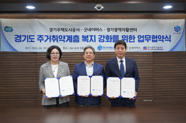 (서울=NSP통신) 정의윤 기자 = 경기주택도시공사(GH)가 굿네이버스, 경기광역자활센터와 경기도형 주거복지 강화를 위한 업무협약을 체결했다.