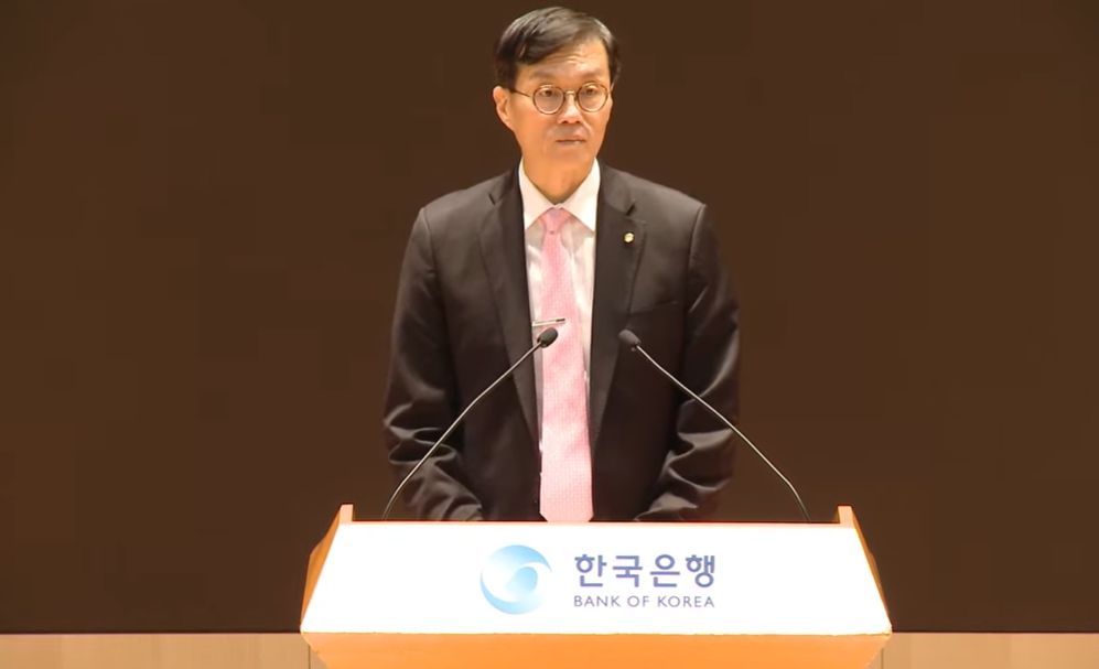 NSP통신-이창용 한국은행 총재가 창립 73주년 기념식에서 기념사를 하고 있다. (사진 = 한국은행)