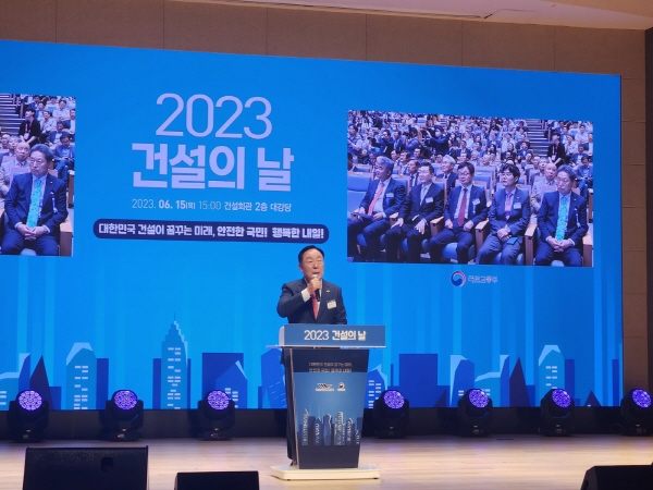 (서울=NSP통신) 정의윤 기자 = 대한건설단체총연합회(회장 김상수)는 서울 강남구 논현동 건설회관 2층 대강당에서 ‘2023 건설의 날’기념식을 개최했다고 밝혔다.
