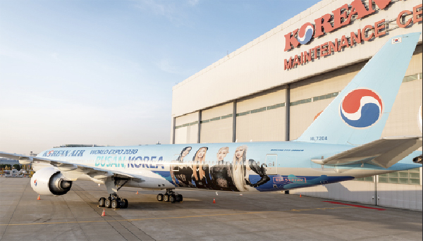 이미 대한항공은 지난 5월 초 부산세계박람회 유치 지원을 위해 보잉777-300ER 항공기를 동원, 전 세계적 인지도를 갖춘 대한민국의 대표 아티스트인 블랙핑크를 항공기에 입힌 바 있다.