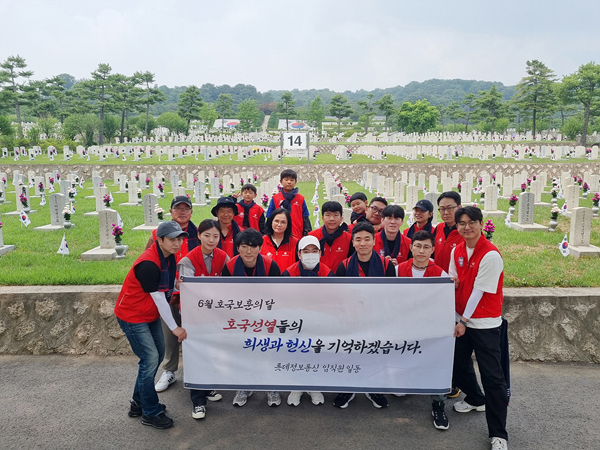 (서울=NSP통신) 이복현 기자 = 롯데정보통신이 6월 호국보훈의 달을 맞이해 이달 15일 서울 동작구 소재 국립서울현충원을 방문해 묘역 단장 봉사활동을 진행했다.