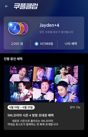 ‘SNL 코리아’ 시즌4의 첫 번째 방청권 신청 혜택은 쿠팡플레이 내 ‘쿠플클럽’을 통해 가장 먼저 만나볼 수 있다.