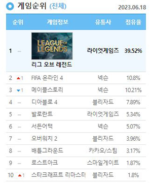 이는 전날 17일 9.88%를 기록해 역대 최고 PC방 점유율을 달성한 후 하루 만에 경신한 것으로 ‘검은마법사’ 등장이 예고된 2018년 여름 시즌에 기록한 9.62%를 두 차례나 뛰어넘은 수치다.
