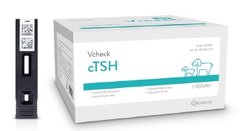 한편 바이오노트의 ‘Vcheck cTSH’는 형광면역측정방법으로 개 혈청에서 갑상선자극호르몬(TSH) 농도를 정량 측정하는 진단키트다. 2021년에 일본 MAFF로부터 인허가 받은 ‘Vcheck T4’를 ‘Vcheck cTSH’와 함께 사용하면 일본 동물병원에서 15분 내로 빠르고 정확하게 개 갑상선 질환을 진단할 수 있다.